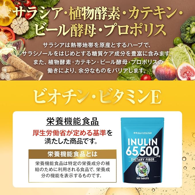 業界最高水準量 イヌリン 65,500mg 水溶性 食物繊維 大容量 300粒 国内製造 カテキン 菊芋 ビフィズス菌 乳酸菌 マルチ酵素 サラシア ビタミン 全391種 サプリ ハルクファクター 錠剤 | oioioichan