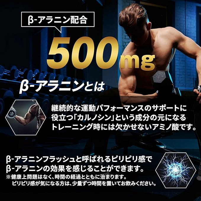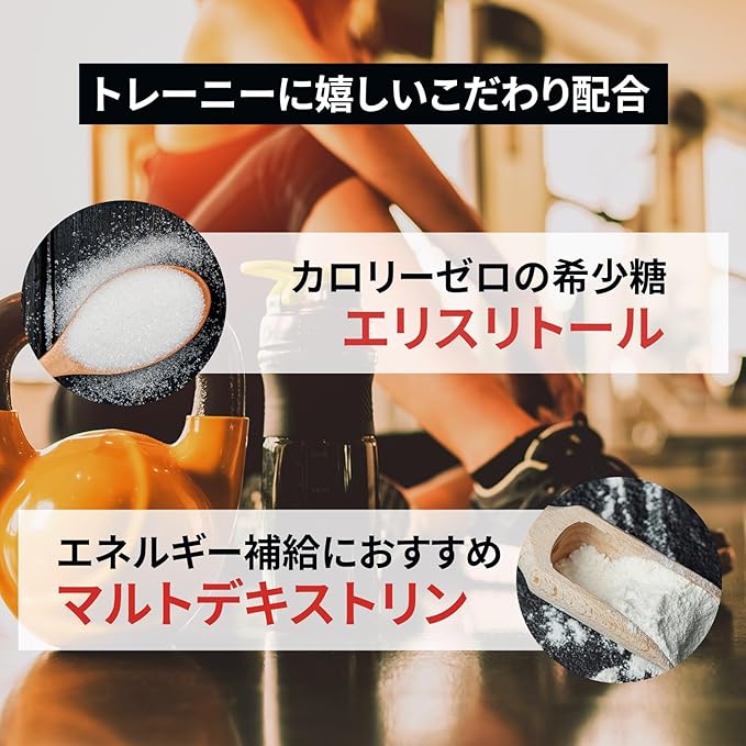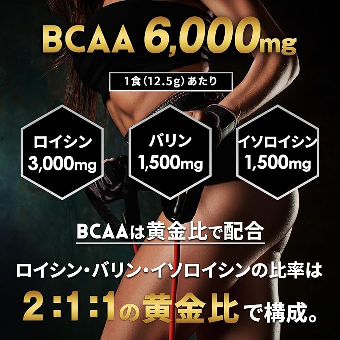 【プロ仕様】3種類の必須アミノ酸 ( BCAA ) 240,000mg、β-アラニン 20,000mg、ベタイン 100,000mg、マルトデキストリン、エリストリール、クエン酸を加えたプロフェッショナル品質のBCAAパウダー。