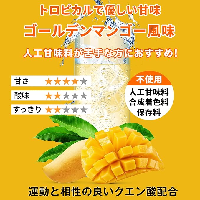 【人工甘味料不使用】絶妙な甘みと酸味を楽しめる徹底的にこだわったトロピカルなゴールデンマンゴー風味。人工甘味料が気になる方におすすめ!