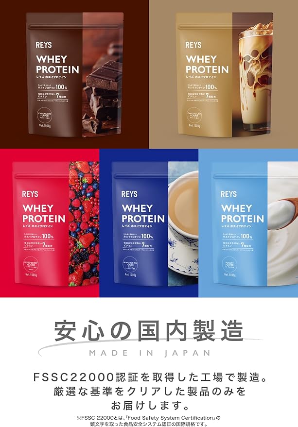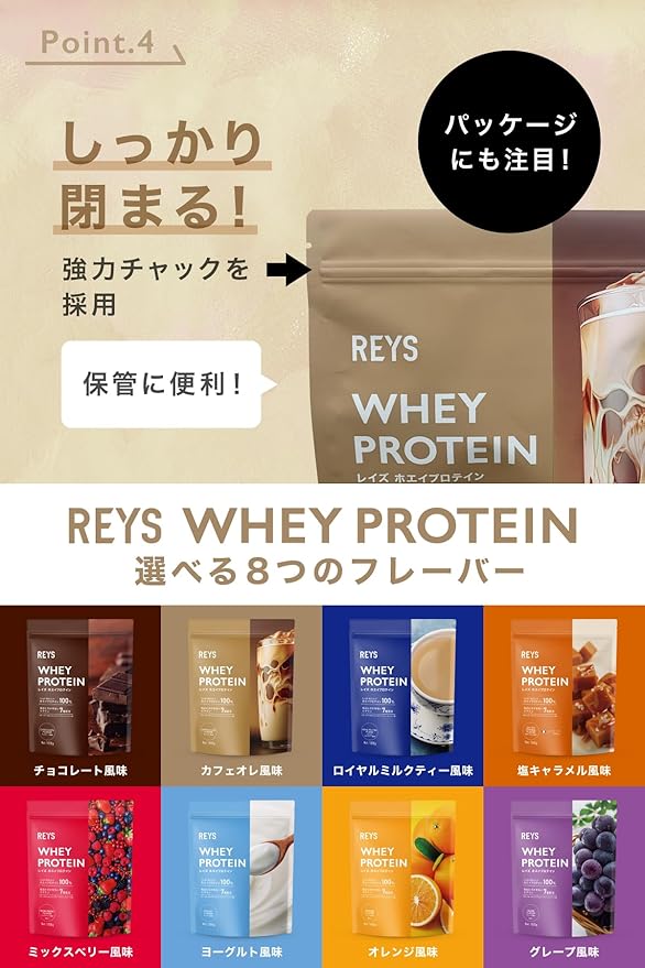 【おいしい・溶けやすい・お手頃価格】YouTube登録者数100万人突破!山澤礼明監修のREYSより待望のホエイプロテイン(WPC)が誕生!おいしさにこだわり、原料の選定・試作を繰り返し、味・溶けやすさ・お求めやすさを実現したプロテインが完成しました。水で美味しくお召し上がりいただけます。