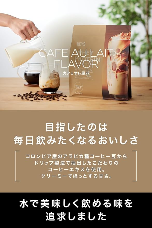 REYS レイズ ホエイ プロテイン 山澤 礼明 監修 1kg 国内製造 ビタミン7種配合 WPCプロテイン ぷろていん ホエイプロテイン (カフェオレ風味)