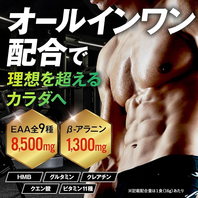 ✅【EAAの決定版】EAA8,500mg β-アラニン1,300mg クレアチン、グルタミン、HMB、クエン酸。最高のトレーニング、理想の筋肉を目指す方に向けたEAAの決定版!