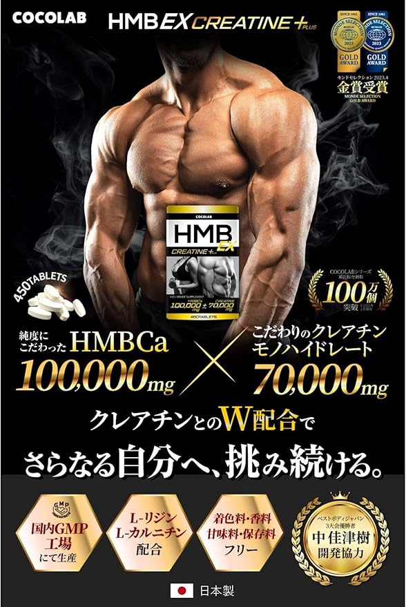 HMB100,000mg クレアチン モノハイドレート70,000mg 国内製造【パーソナルトレーナー監修】L-カルニチン L-リジン 450タブレット 日本製 筋トレ トレーニング COCOLAB 2袋セット | oioioichan