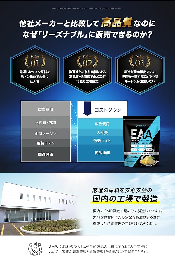 ✅【製薬会社との共同開発】安心・安全の国内GMP認定工場のみで製造しております。