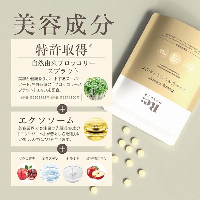 ✨【特許取得の美容成分】自然由来のブロッコリースプラウトをはじめ、エクソソーム、ザクロ果実、エラスチン、セラミド、植物発酵エキスなどの美容成分を贅沢に配合。
