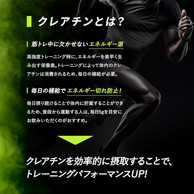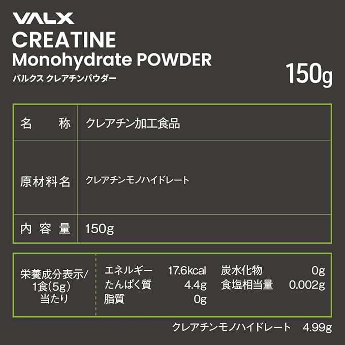 ✅開発者の想い:クレアチンをトレーニングにプラスすることで、普段以上のエネルギーアップが見込めます。VALXクレアチンパウダーは最高純度のクレアピュアを100%使用した高品質のクレアチンです。もう一段上を目指すなら、1日5gの新習慣を始めませんか?