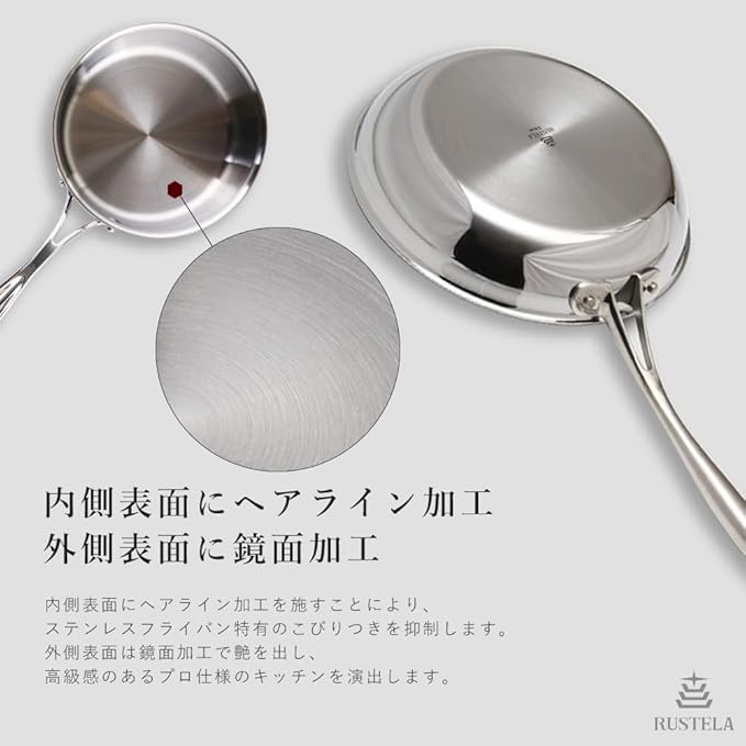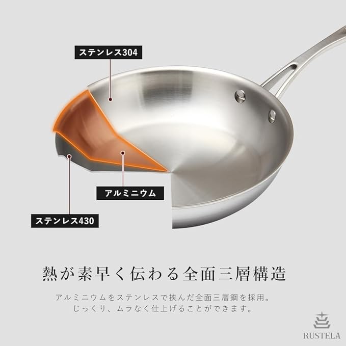 熱効率に優れた三層鋼を採用しており、まんべんなく食材に火が通り調理時間の短縮に貢献。ガス火、電磁調理器(IH)対応。食洗機対応。