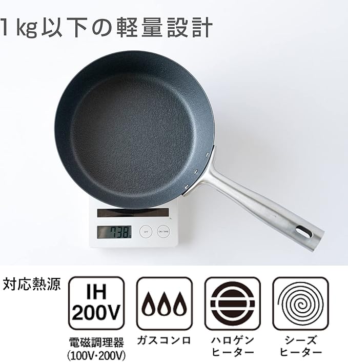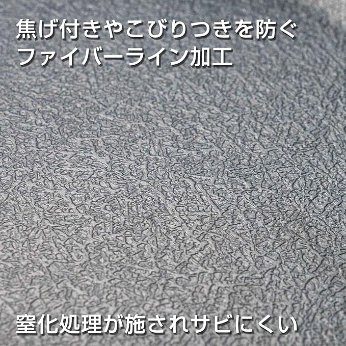 表面加工:ファイバーライン加工(凹凸加工)でこびり付き・焦げ付きに強く、熱の通りが良い