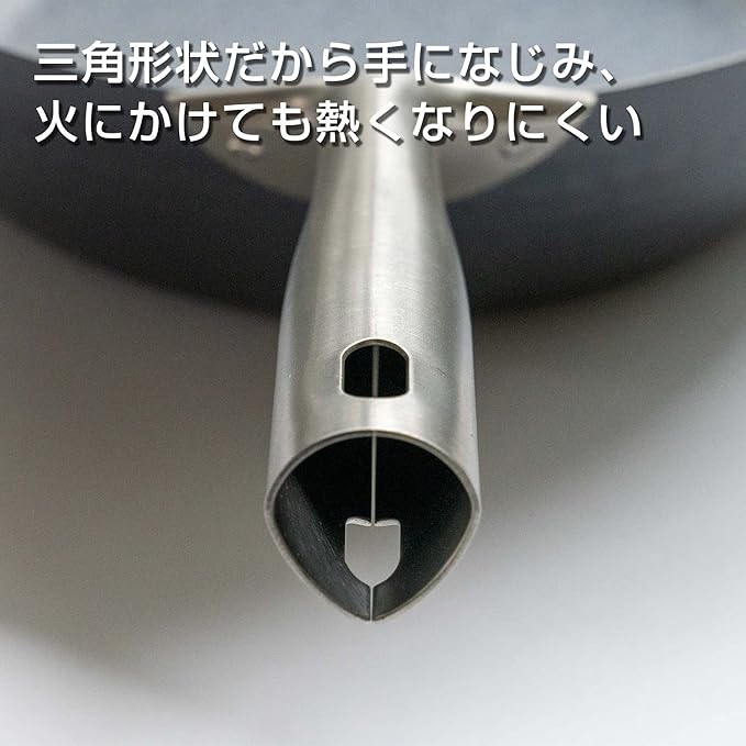 材質:本体/鉄(窒化コーティングでこびりつき・焦げ付き・サビに強い)、取っ手/ステンレス(三角形状で持ちやすい)、取付け金具/鉄(ニッケルメッキ)
