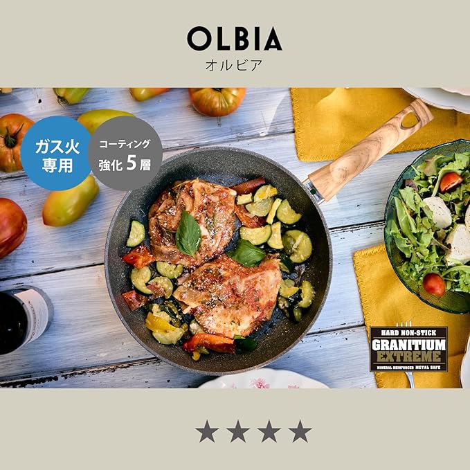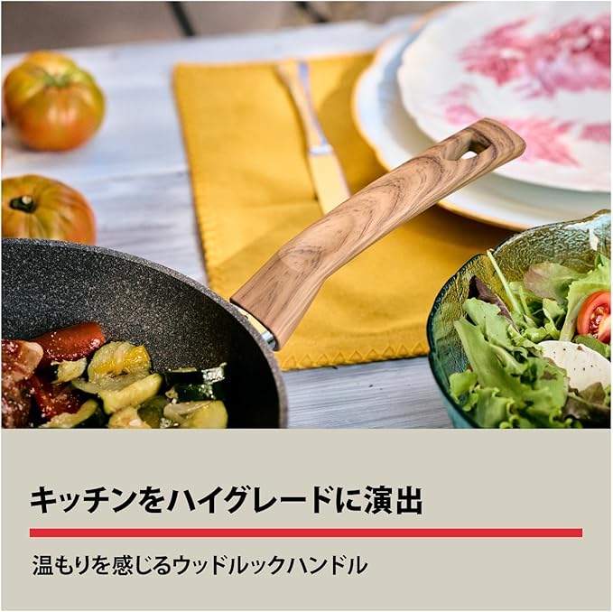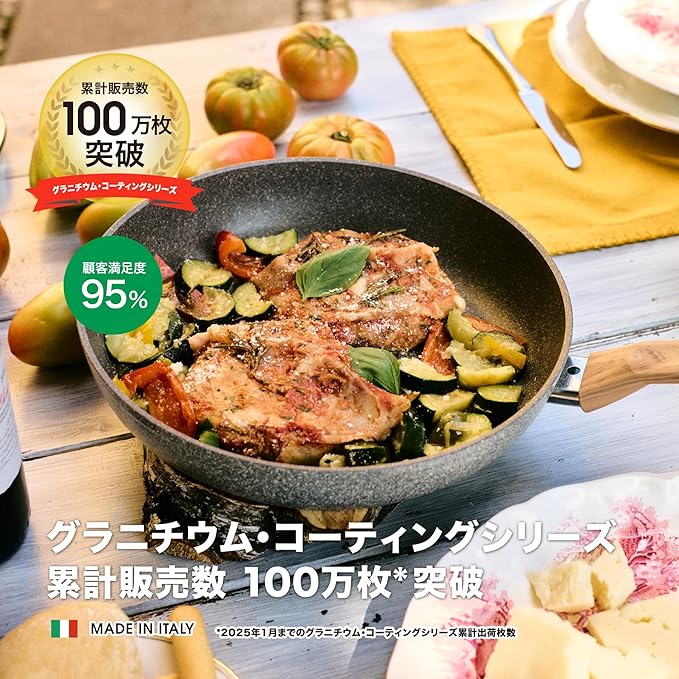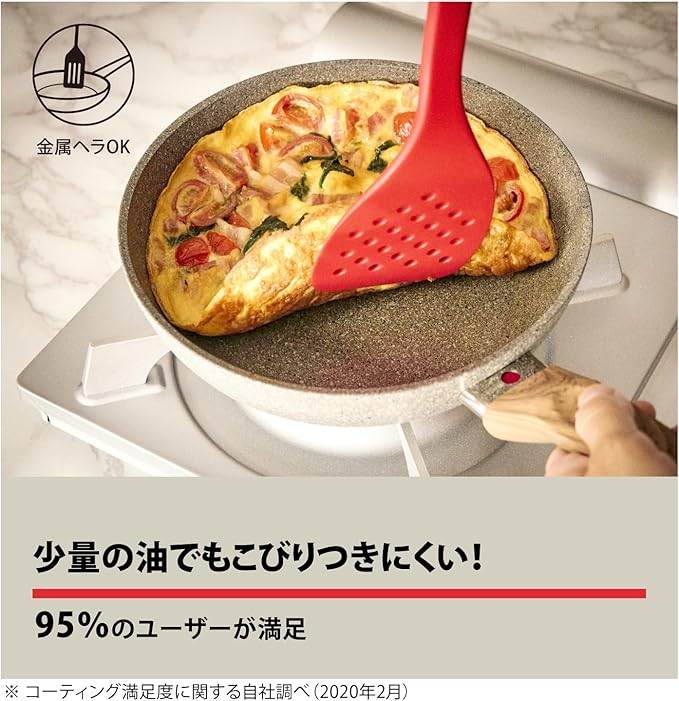 中面:グラニチウム・エクストリーム・コーティング(フッ素樹脂加工)、外面:セミラック加工 / 食洗機OK・金属ヘラ使用可能