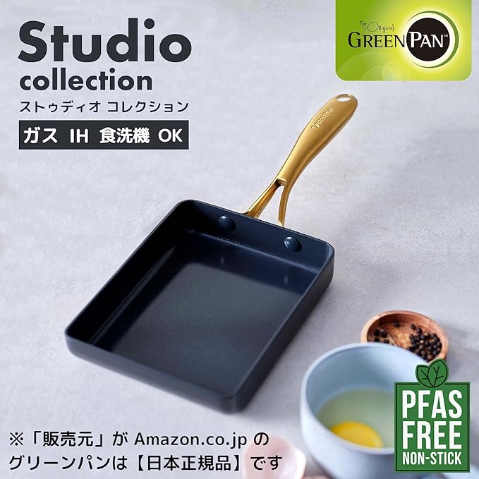 グリーンパン(Greenpan) GREENPAN ストゥディオ studio 有害物質を一切含まない砂由来のミネラル成分のセラミックコーティング エッグパン 玉子焼き器 IH ガス 対応 くっ付きにくい ダイヤモンド粒子配合で高い熱伝導性 ベルギー発ブランド 軽くて熱くなりにくいハンドル 食洗機対応 外面も汚れにくい 耐熱温 | oioioichan