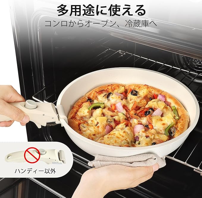 ユニークな取っ手のとれる: に基づいた取り外し可能なハンドルにより、コンロからオーブン、冷蔵庫まで簡単に移動でき、クリックするだけです。