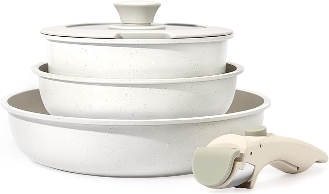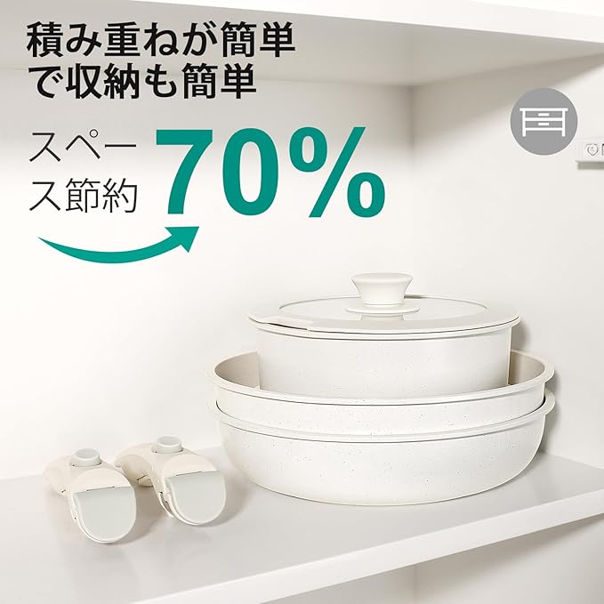 GiPP フライパン セット IH・ガス火対応 5点 焦げ付かない鍋セット 取っ手が取れる セラミックコーティング フライパン 片手鍋 体に害のない お手入れ簡単 オーブン対応 PFOA PFOS フリー【600日.】ホワイト | oioioichan