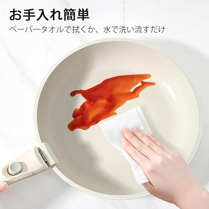健康的なセラミックコーティング: 天然の焦げ付き防止コーティングは毒性がなく、100% PFOA フリーで、調理に必要な油がほとんどなく、健康的な料理に最適です。