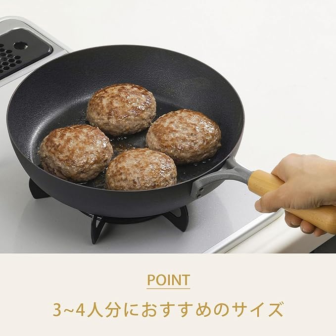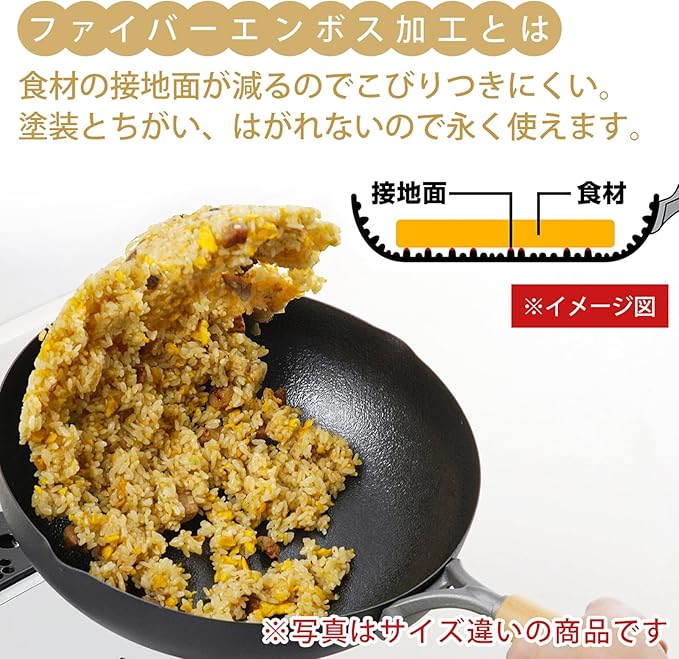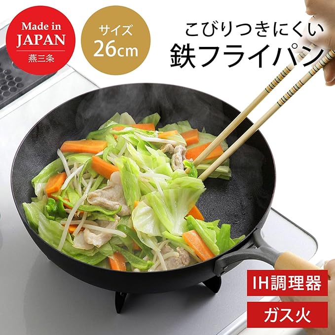 下村企販 鉄 フライパン 26cm 【日本製】 ガス IH対応 ダブルファイバー エンボス加工 焦げ付きにくい 持ちやすい木ハンドル お手入れのしおり付き 燕三条 47021 | oioioichan