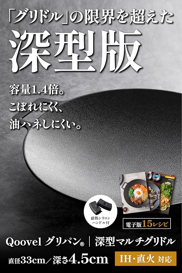 【深さ4.5cm、料理の幅が広がる】従来型より約1cm深くなった「深型版マルチグリドル」。こぼれにくく油ハネしにくいから、煮込みや揚げ物も安心。アウトドアでも家庭でも快適に使えます。