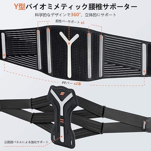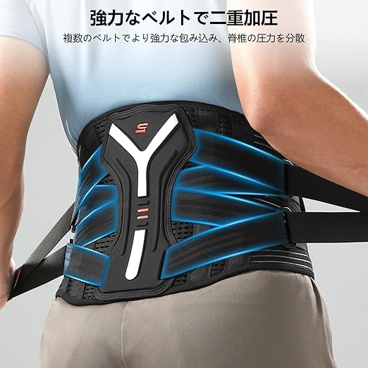 【腰用 サポートベルト】この腰椎サポーターベルトは、腹圧を高め、腰をしっかり支える腰用サポーターベルト。さらに重要なのは、この男女兼用の腰部サポーターベルトには、最新設計のY字型強力サポートプレートが搭載されており、腰部により密着し、腰椎から骨盤にかけてしっかりと腰をサポートします。背中を自然にまっすぐに保つための上向きの張力を提供します。