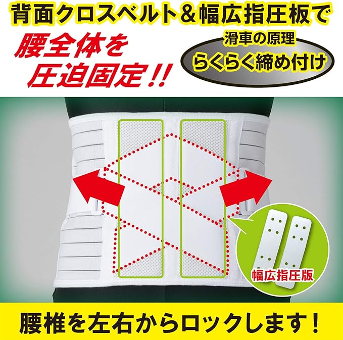 背面X(クロス)ベルトが腰椎を強力にホールドします。