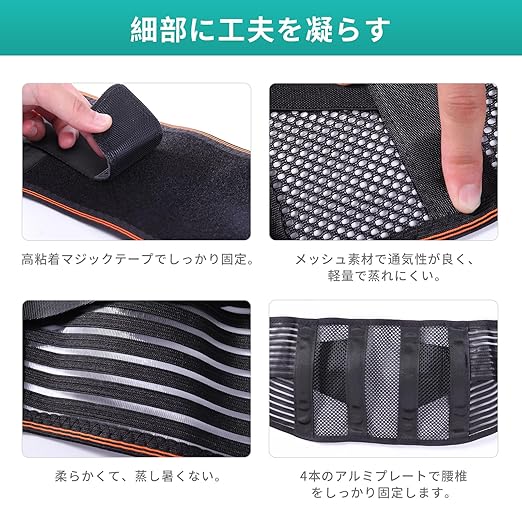 【不良姿勢補正】本腰部サポーターは、高密度のネオプレン素材と通気性に優れたメッシュ素材を使用しており、適度な圧迫と腰部筋肉の温め効果を提供します。背中の不快感を和らげる、長時間の使用に適しています。