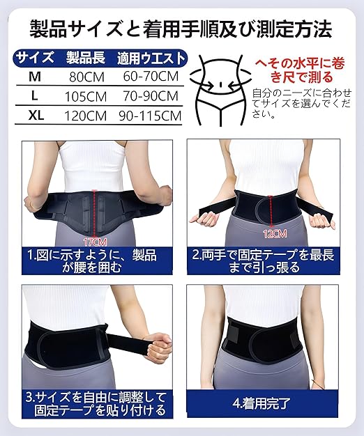 【男女兼用/用途が広い】支持性、通気性、快適性を兼ね備え、持ち歩きやすい。長時間の仕事、運転、運動、フィットネス、家事、日常生活、アウトドア、腰にストレスを与えるシーンに最適です。ウエスト(へそ周り)M:60 cm-70 cm、L:70 cm-90 cm、XL:90 cm-115 cm注:サイズ選択:購入前にウエスト(へそ周り)を測定してください。サイズが重なる場合は、大きいサイズを選択してくださ。