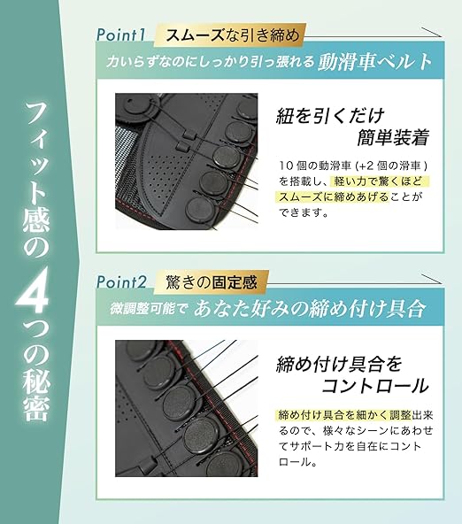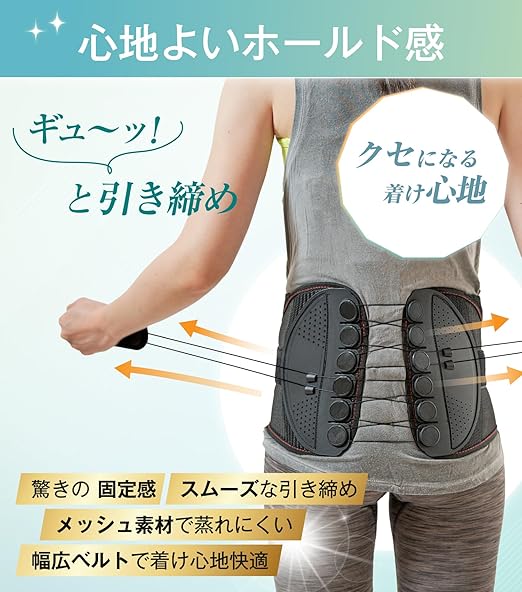 ✅【締め具合調整も簡単】弱い力でもしっかり締められる構造で身体にフィット。力がいらないため、女性やご年配の方でも手軽に装着できます。