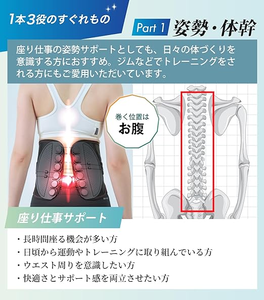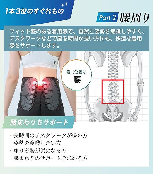 ✅【用途に応じて幅広く活躍】腰まわりを支える多機能設計。デスクワーク、立ち仕事、運転、スポーツ、日常生活など、様々なシーンで活躍。軽くて扱いやすく、産後や高齢の方にもおすすめの仕様です。