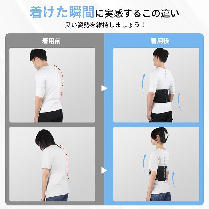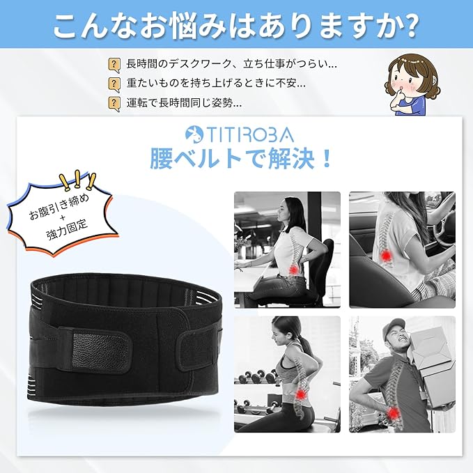 【..co.jp 限定】【良い姿勢を保つX男女兼用】TITIROBA(チチロバ)腰痛ベルト コルセット 腰 サポーター 二重加圧式 男性用 女性用 スポーツ 仕事 作業用 調整可 Lサイズ(ウエスト80-89cm) | oioioichan