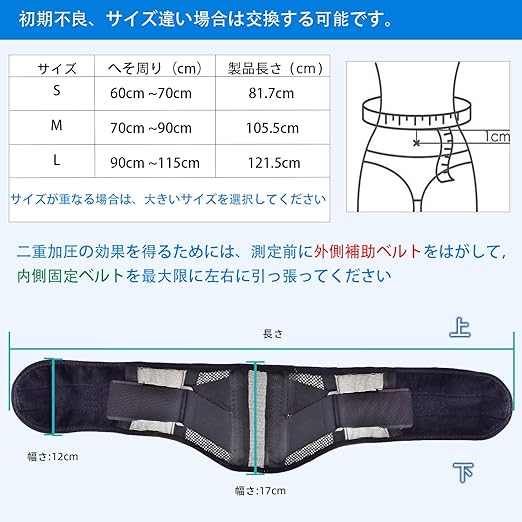 【サイズ】(へそ周り)S(60cm~70cm)・M(70cm~90cm)・L(90cm~115cm) サイズが重なる場合は、大きいサイズを選択してください。お年寄りの方にも解りやすい図解付き使用説明書が入り【品質.】万が一、初期不良や寸法間違いなどがございましたら、返品または交換することを対応させていただきますので、お気軽にご連絡ください。
