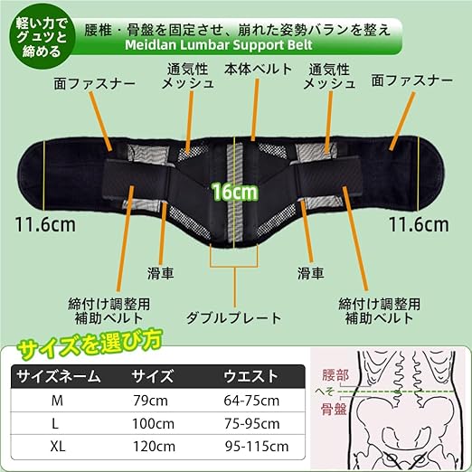 腰ベルト 腰 コルセット 腰椎 腰痛 腰用 ベルト 背筋補正 腰 サポーターメッシュ通気 加圧 腰椎用 固定サポート スポーツ 仕事 作業用 女性 男性 Meidlan (L(75-95cm)) | oioioichan