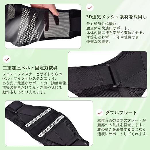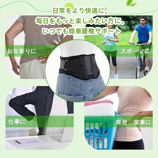 【あらゆる場面で活躍】本製品は機能性に優れています。軽くて通気性に優れ、オールシーズン着用可能。労働保護、日常腰サポートに適して、また、長座するサラリーマン、運搬作業、スポーツ、捻挫とぎっくり腰、腰部不快感緩和などの場合も使えます。