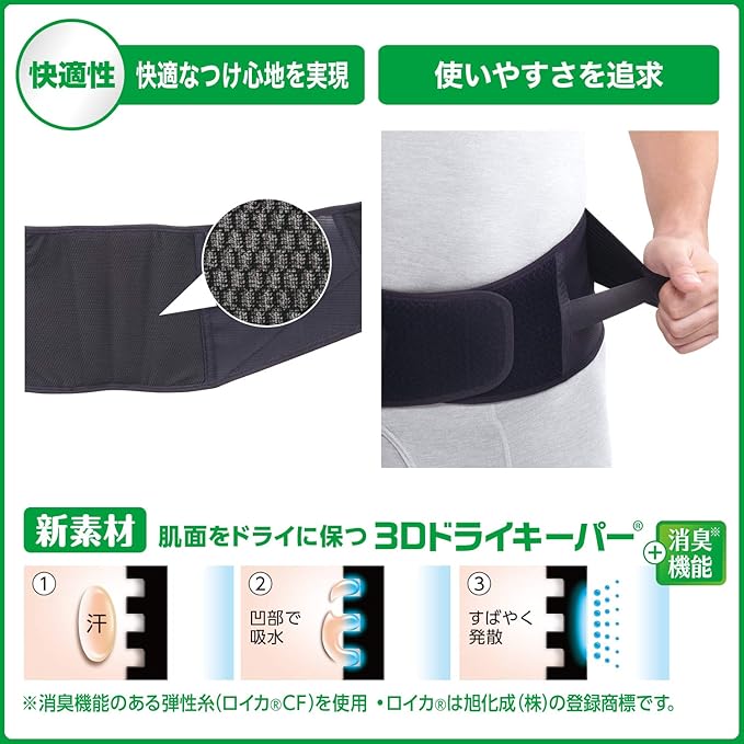 肌面をドライに保つ、新素材「3Dドライキーパー」を採用。長時間の着用の際も快適なつけ心地を実現。消臭効果もあります。
