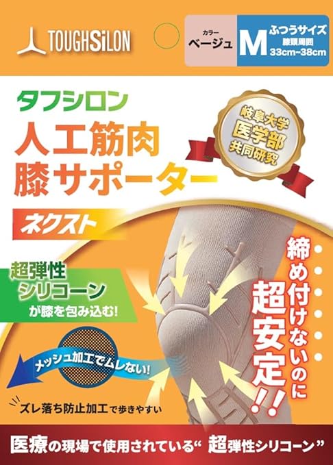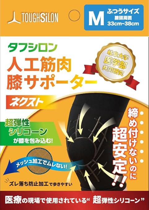 【のトップニッチメーカーが開発】 タフシロン膝サポーターネクストは、機関などの手術練習用の精巧な臓器模型の製造技術を持つタナック社が開発。現場で使用の独自配合シリコーンが膝の曲げ伸ばしをしっかりサポート◎高齢者用やスポーツ、ランニング用にもおすすめ。膝や腰に最適なサポーターです。