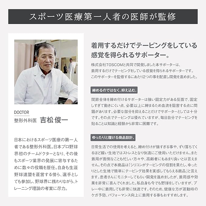 ✅整形外科医監修のテーピング理論:整形外科医監修のもとシリコンをテーピングのように配置。着用するだけでテーピング効果を得られるサポーターです。
