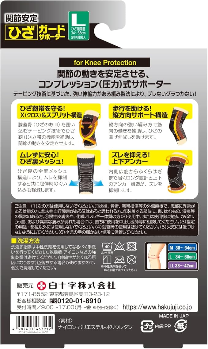 関節の動きを安定させ、ブレずにグラつかせないサポーター膝用です。