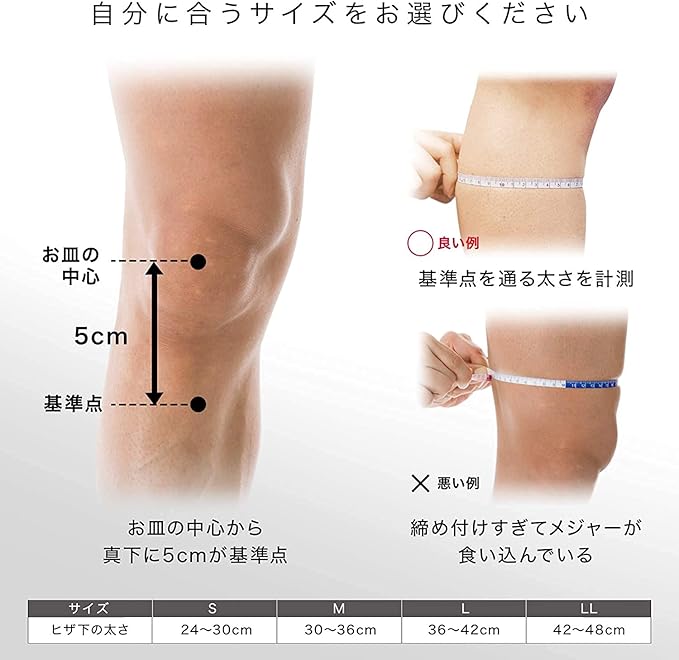 【ヒザのお皿の下のトラブルに】お皿の下のトラブルを手軽にサポートできるよう設計。お皿の下を適度に押さえ、お皿への負荷を軽減します。