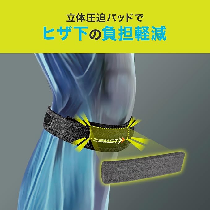【装着が簡単】バンド形状なので、ヒザ下に巻くだけ。シューズを履いたままでも簡単に装着できます