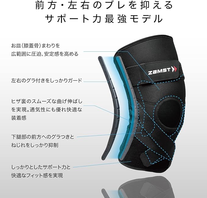 【左右のグラつきをしっかりガードするハードサポートモデル】ヒザの左右のグラつきをしっかり抑制しながら曲げ伸ばしをスムーズに行えるよう設計された、独自のファンクショナルステーを採用しています。