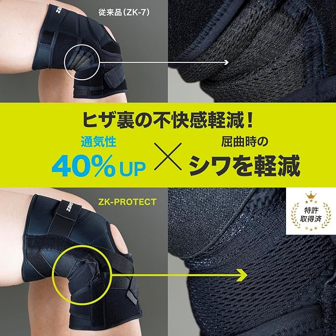【しっかりとしたサポート力と快適なフィット感を実現】しっかりとした圧迫が可能なクローズ設計をベースに、ヒザ下部分と太ももストラップをオープン設計にすることで、脚の形状や圧迫の好みに合わせた的確なフィッティング調整が可能です。 また本体前面に採用した伸びやすくパワーのあるクロロブレンが、圧迫しながらも、動きやすさを両立。ズレにくく、プレーを妨げません。