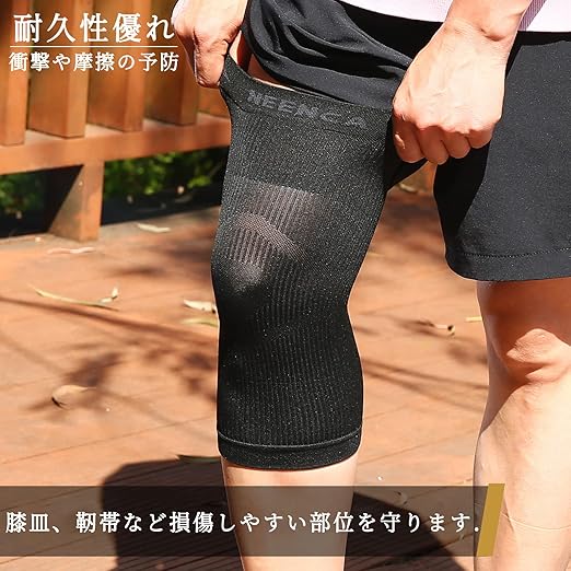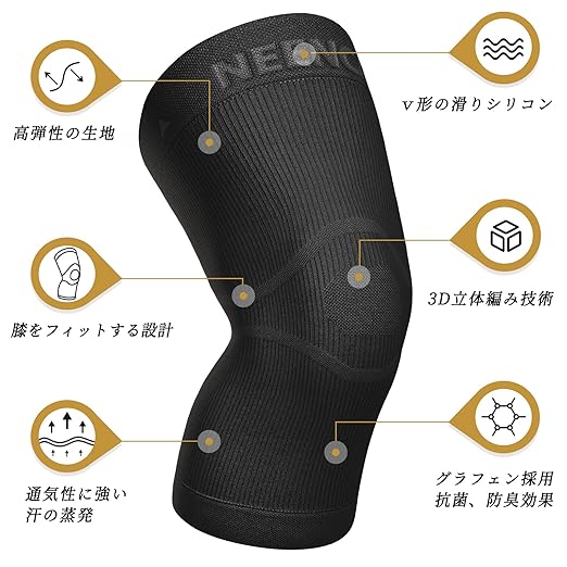NEENCA 膝サポーター 薄手 グラフェン採用 スポーツ用 膝保護 通気性 膝安定 マラソン/バドミントン/バレーボール/ランニング 日常生活 左右/男女兼用 1枚入り (L, ブラック) | oioioichan