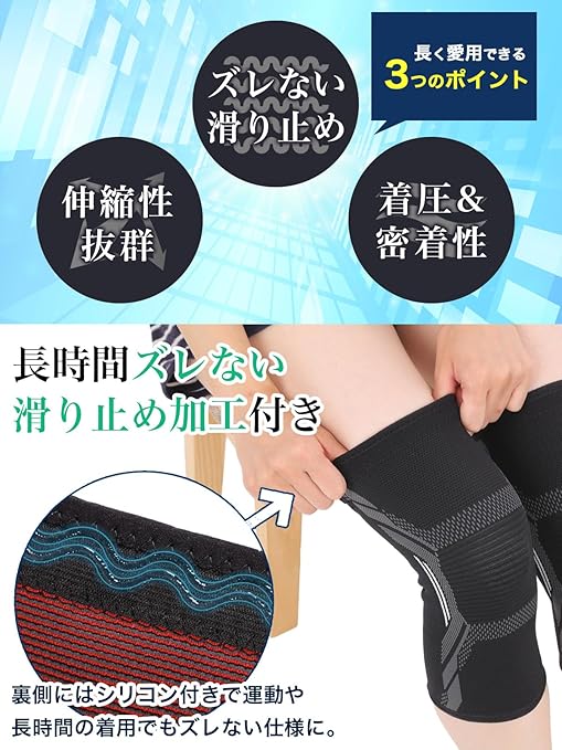✅専門店が設計 膝サポーター2枚入り✅【滑り止め付き ズレない、毎日を快適に♪ 】