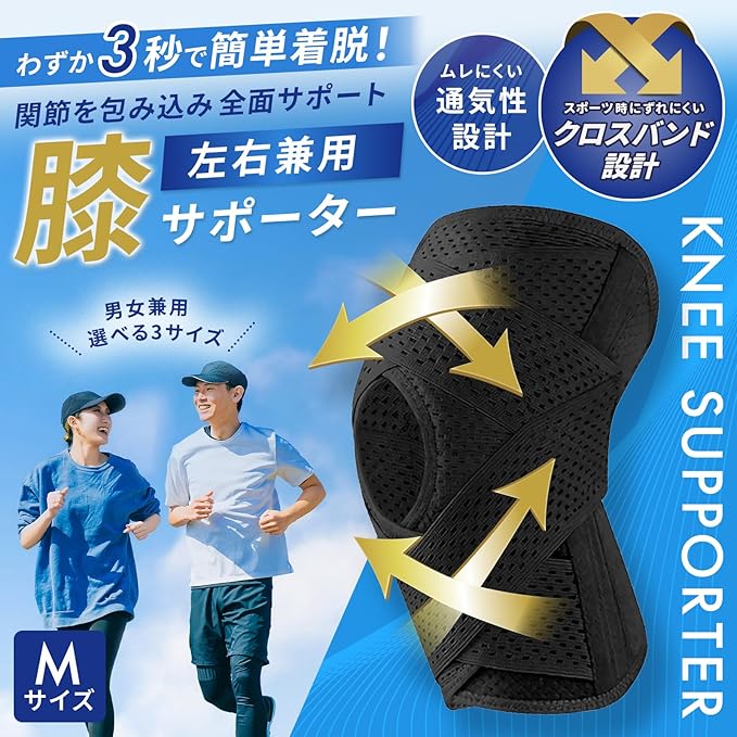 [KURASUUMO] クラスーモ 夏用 通気性 膝サポーター【ムレない 瞬間着脱】 ズレない Vベルト スポーツ ランニング ゴルフ 登山 日常 膝間接 靭帯 サポート 膝360 固定 左右兼用【Mサイズ ブラック】 | oioioichan