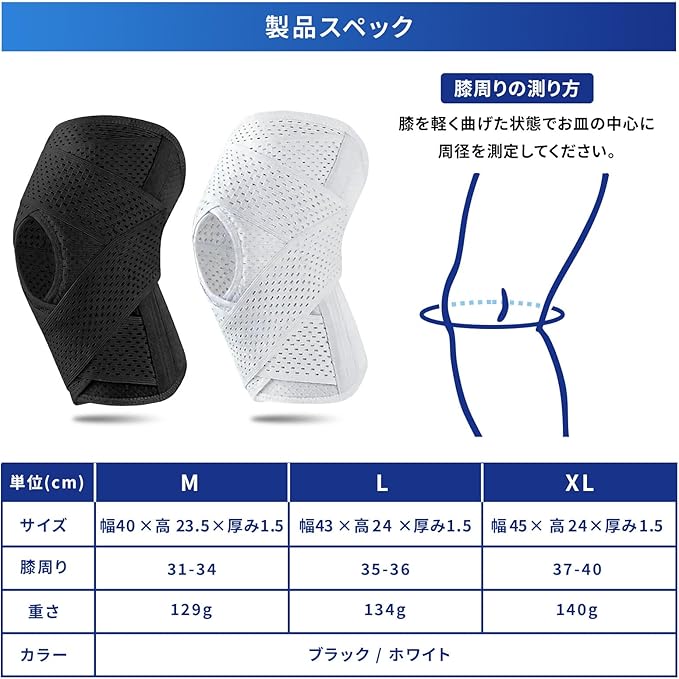 ✅【製品仕様】Mサイズ(膝周りの目安:31-34cm) 幅 40cm 高 23.5cm 厚み1.5cm 重さ 129g/国内ブランドのKURASUUMOではカスタマー対応にもお客様に寄り添ったご対応をいたします。初期不良・故障の際にはご気軽にお問い合わせください。製品.内でのご対応も可能です。