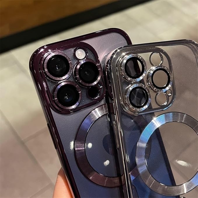 iPhone 16 15 14 Plus 13 12 11 Pro X XR XS Max用高級メッキワイヤレスクリアソフトマグネットカバー、ブラック、iPhone 12Pro max用 | oioioichan