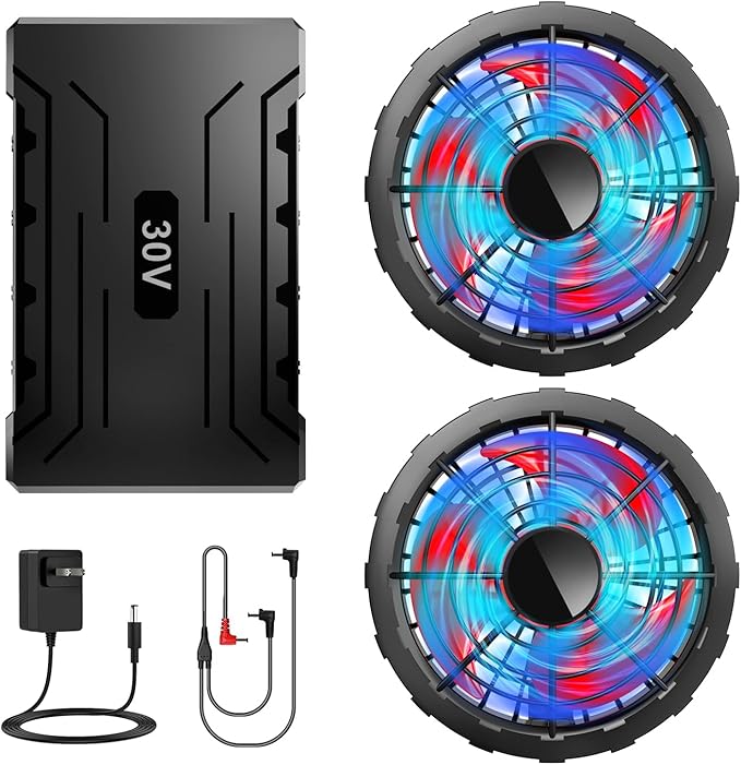 【2025年KLIFE最新作・30V超高出力・ファン. セット】30V超高出力、40000mAh超大容量.は丈夫なデザインで、風量をより強く、 2025年最強空調作業服用のファンと.フルセットがようやく登場!暴風感はいっそう強く、衝撃的な爽快感を生み出す!お手元の空調作業着の性能を最大威力発揮できます!ボタンを押すと、大量の新鮮な空気が服の中を迅速に循環し、服内の汗を素早く乾燥し、蒸し暑い空気を排出し、心地よい感覚を生み出して、圧倒的な涼しさを実現します。着用後、服内の急速な空気の流れにより、皮膚の汗が急速に蒸発し、体の表面温度を急速に低下させ、屋外作業者には最適な夏の定番アイテムです。