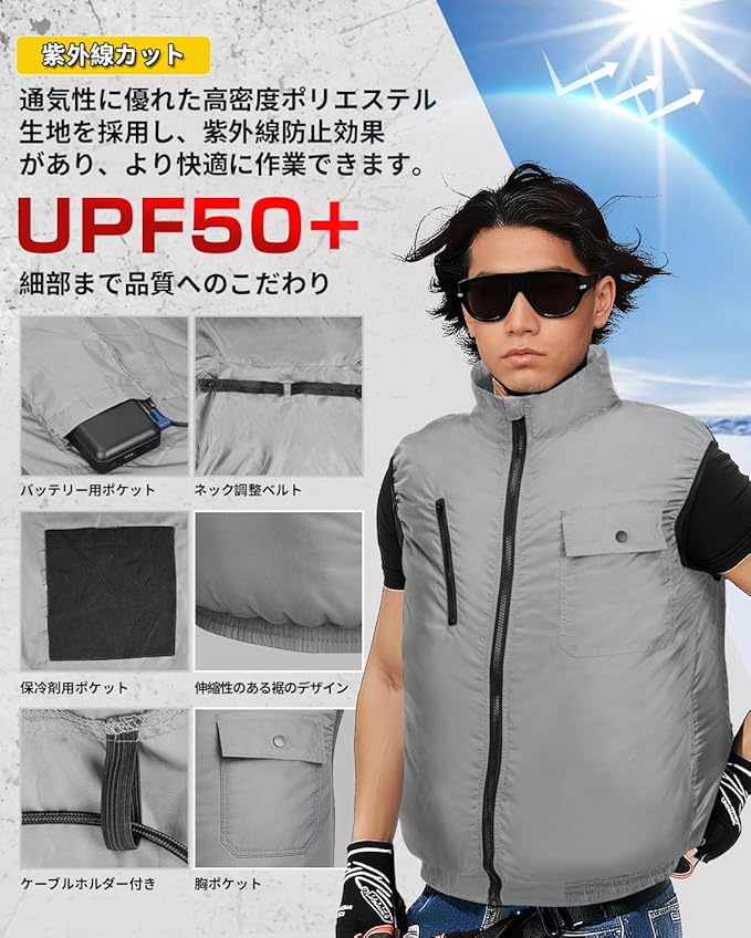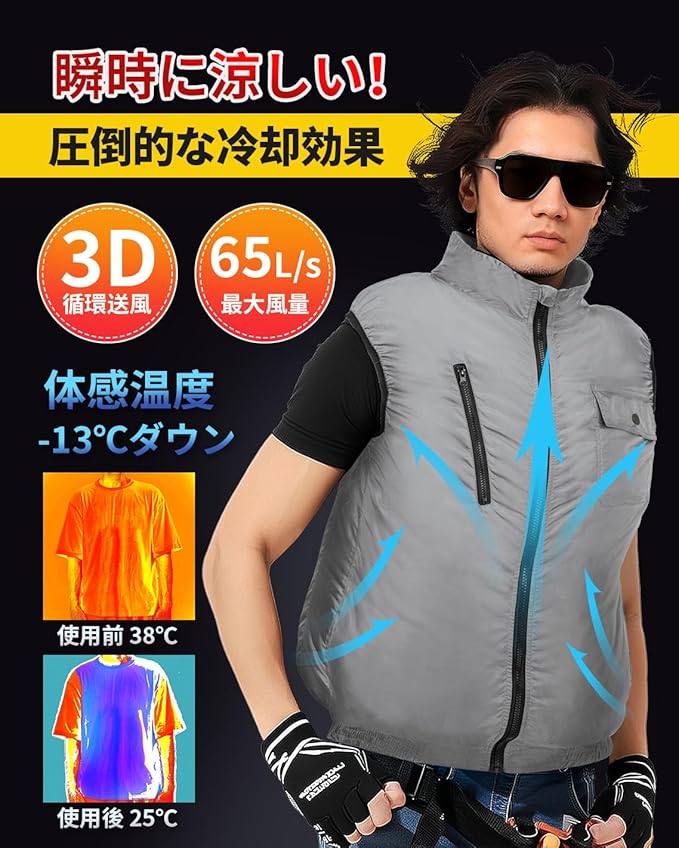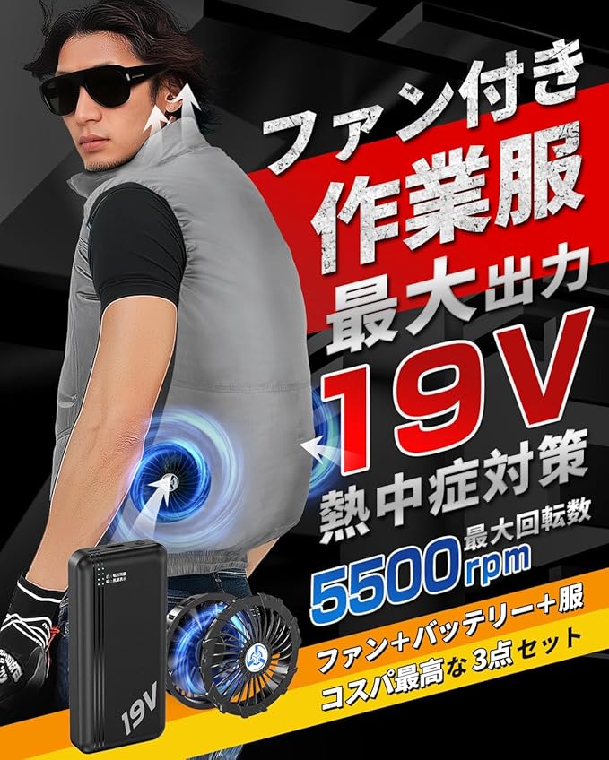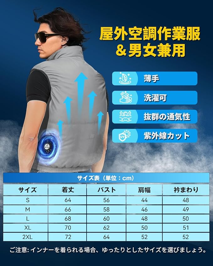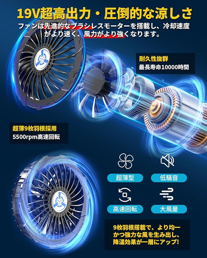 [Sumeriy] 空調作業服 ベスト 2025暴風ファン 30000mAh. 19V超高出力 最大30時間連続使用 9枚羽根 4段階風量調節 ファン付きベスト 薄型 吸汗速乾 UVカット 建設現場 農作業 熱中症対策 男女兼用 | oioioichan