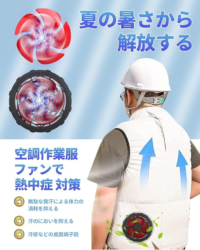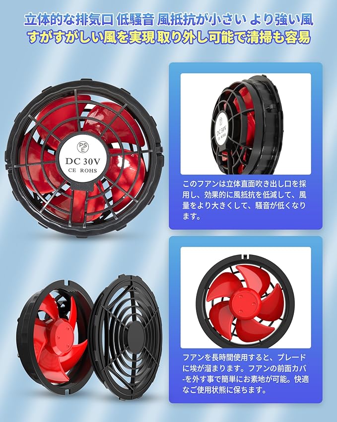 空調作業服 ファン 30V 超大風量 薄型 DCケーブル付 5枚羽根 ブラシレスモーター 取り外し可能 空調作業ベスト/半袖/長袖対応 熱中症対策 暑さ対策グッズ 穴直径9cmのあらゆる作業服適用(. 別売り) | oioioichan