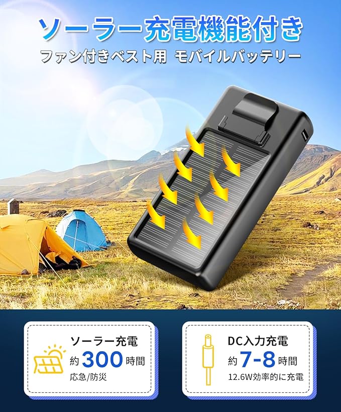 【2025新&ソーラーパネル搭載&28V超高出力&作業服専用 ファン.セット】2025夏最新型、空調作業服ファンは航空力学を応用した流線型5枚大面積羽根が搭載して、風の抵抗を45%低減し、風が中心に集まり直進性が高く、パワフルな風を生み出します。30000mAh大容量専用.が搭載され、ワンボタンで15V-18V-22V-28V-Autoモードに5段階切り替えるだけでなく、同類製品に比べると28V最強風量モードでもパワーが一定で、風量が弱くならないでずっと130リットル/秒で服内に暴風を送ります。真夏のべたつく汗、焼けつくような日差し対策として活躍します。28V暴風はいっそう強く、服内を駆け巡る風が、衝撃的な爽快感を生み出す!お手元の空調ファン付きベストの性能を最大限発揮できます。