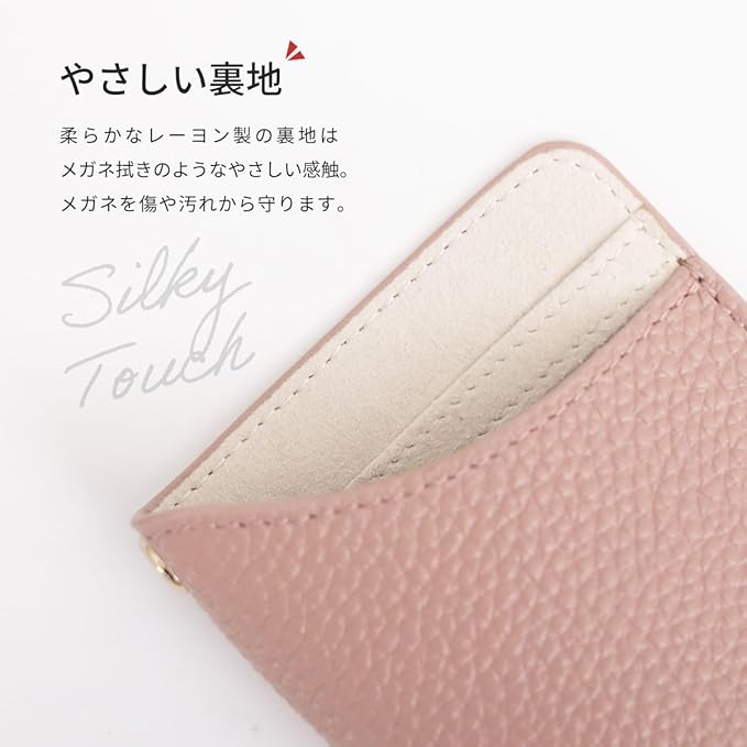 【シンプルな使い心地】柔らかな牛革を使用した薄型軽量メガネケースです。ポケット型で開閉不要。いつでも使いたいときにサッと取り出し。サイドのホールに別売りのストラップを取り付けて、首やバッグの持ち手に下げることも可能です。どこに置いたのかわからなくなってしまう、バッグの奥に入り込んでしまうといった困りごとを防ぎます。