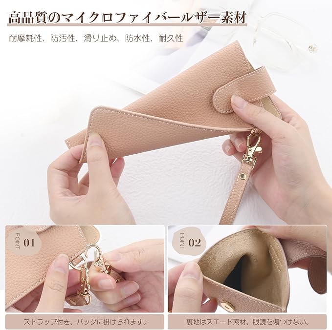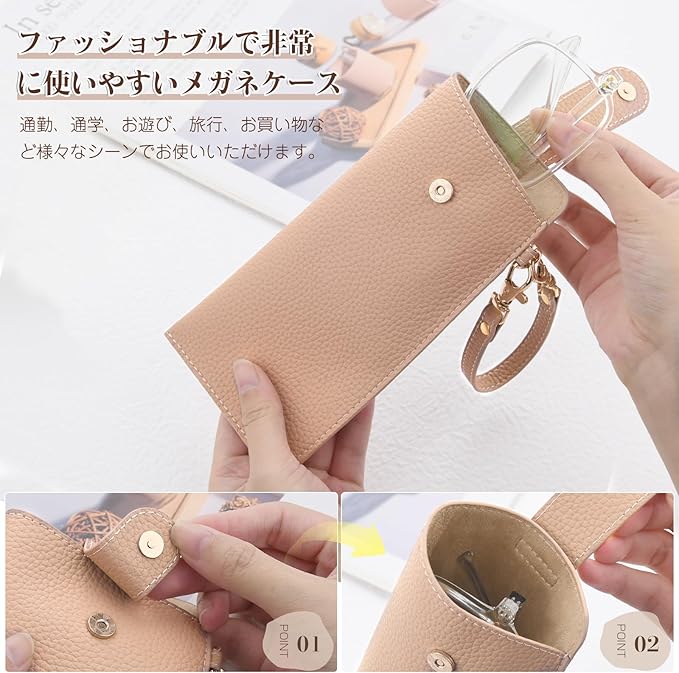 【高品質な素材を使用】 マイクロファイバーレザー素材、柔らかく耐久性があり、手触りが快適です。このメガネケースは、高品質のソフトレザー製、耐摩耗性、防汚性、滑り止め、防水性があります、長持ちできるアイテムです。高品質な金具は耐久性がある、人気のカラーからお好みのカラーをお選びいただける、スタイリッシュでカジュアル、多用途に使えるメガネケースです。メガネケース、 スリム 眼鏡ケース おしゃれ レディース。