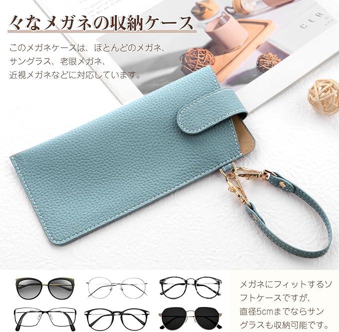 [YooFa] メガネケース おしゃれ レディース ソフト 眼鏡ケース バックル付き おしゃれ 女性 薄型 眼鏡収納袋 可愛い スリム 持ち運び サングラスケース 御洒落 ハンドストラップ コンパクト メガネ収納袋 メンズ 携帯用 メガネポーチ | oioioichan